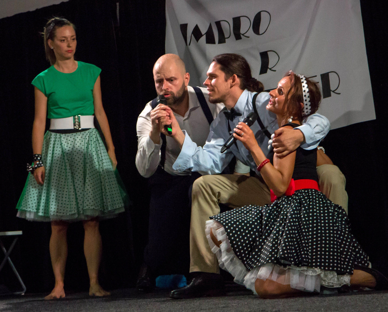 První vystoupení Vypravěčů okamžiku jako závěr improvizačního roku 2024/2025, foto by Jana Stehlíková